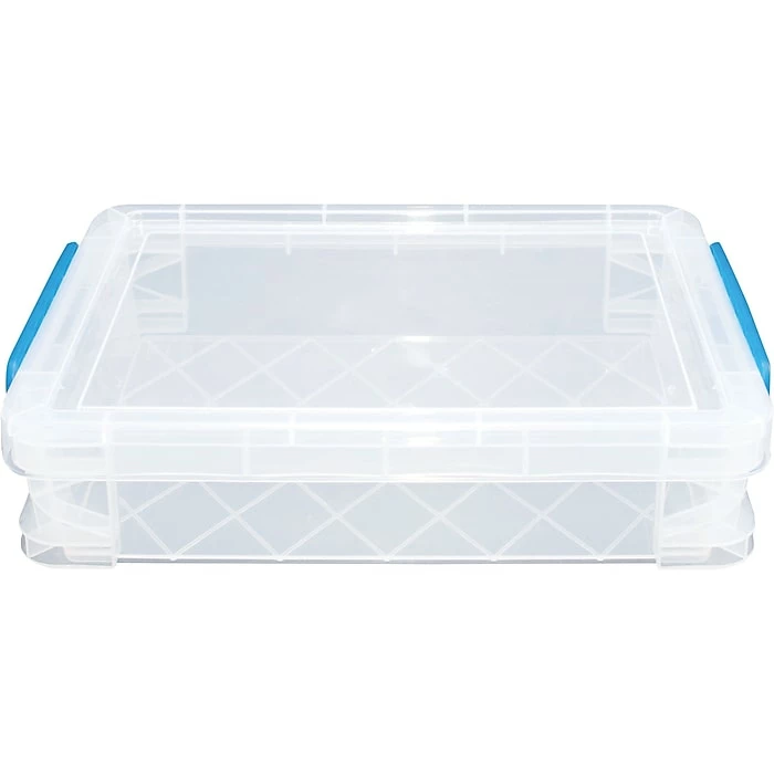 Don’t sweat the small OR big stuff with Advantus Super Stacker. This space-saving storage system will bring organizational order to any space. Its stackable design is perfect for use with or without shelving, with a heavy-duty plastic construction that can accommodate large or heavy items. Easy snap-lock handles keep lid in place and contents secure for transport, and fun color variations make it easy to categorize and distinguish contents. Advantus Super Stacker® Document box is clear and measures 14.5″L x 10.5″W x 3.38″H and has snap-tight handles to hold contents safe. Easy visibility for recognizing items within the box without opening. The letter-sized document box can be transported easily and is designed to hold documents up to 8.5″W x 11″L.
