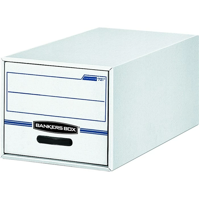 Drawers are ideal when you have a limited amount of storage space, no shelving units, or require frequent access to files. The stronger the drawers, the higher they stack and the more space you save. The reinforced front and back drawer panels in the Fellowes Bankers Box stackable stor/drawer storage add for lasting strength. Multiwall thickness on drawer sides and back improves durability. A reinforced plastic handle provides for easy drawer access.