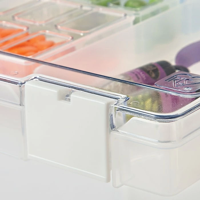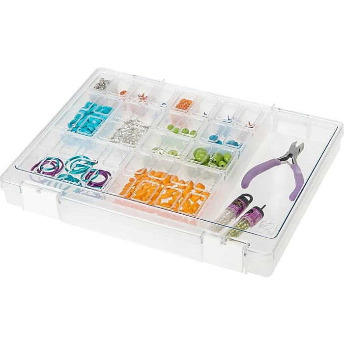 This 16-Compartment Craft Carry All-Case by IRIS USA, Inc. is the perfect solution for all of your craft and accessory needs. This case includes various sizes of movable compartments allowing for custom organization. The lid is removable and doubles as a work surface for beading. This is the ultimate case for crafters and beading enthusiasts.