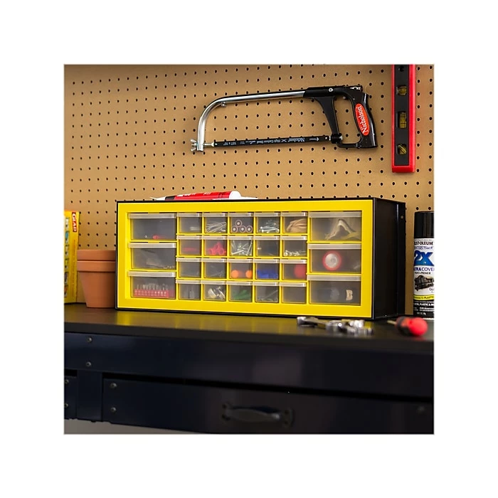 Whether you’ve got beads and buttons or nuts and bolts, the 26-drawer cabinet will help keep you organized. The conveniently sized drawers are great for holding an array of small pieces, and the built-in lip at the back means they won’t fall out of the cabinet when opened. The multi-drawer unit is optimally designed for stacking or mounting on the wall to maximize storage space. Screw holes on the sides mean you don’t have to put screws in the wall in advance, and ribs on the four corners keep the cabinet from falling over when moved side to side, front to back, or when opening drawers.