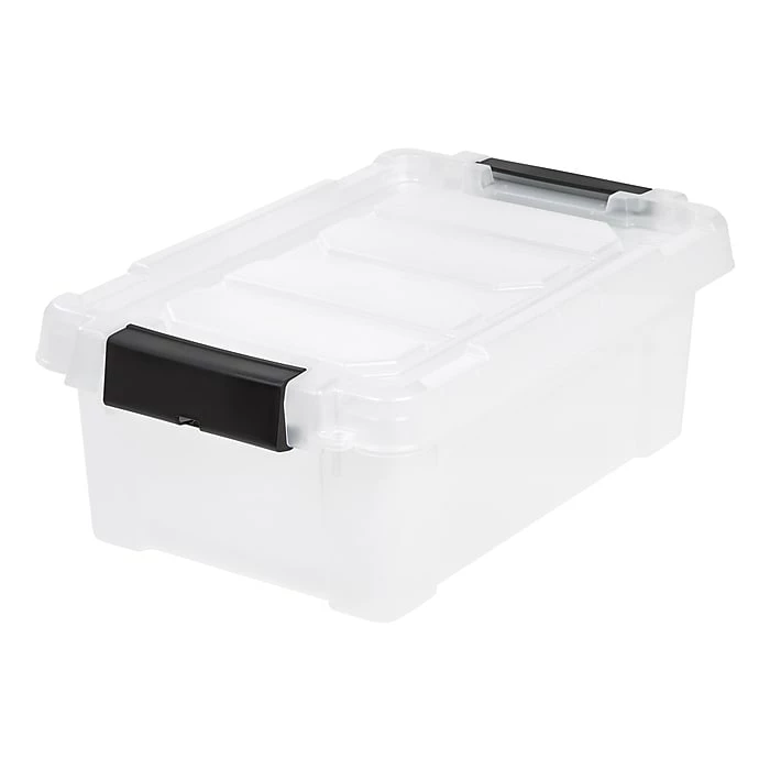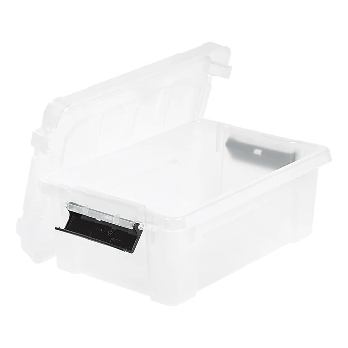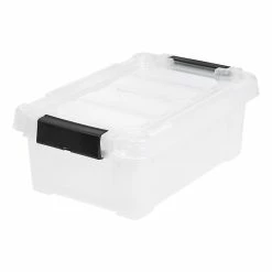 This 3 Gallon Store-It-All tote is great for keeping your garage or attic organized. The lid is designed for a bungee cord or strap to keep the tote secure while in the bed of a truck or on a shelf. See other items in this series to create a modular storage system: SIA-5, SIA-10, and SIA-18.