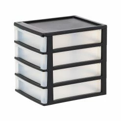 Store more with more space. The Iris 4-drawer desktop units are great for maximizing storage. Great for your home, office or garage to clean up your desktop or shelf. Put anything from makeup brushes, first aid, craft, and office supplies. This clear drawers make it easy for you to see where and what you’ve placed. Save some space by stacking the units. Organize and declutter your workspace or living area. Made in the USA.