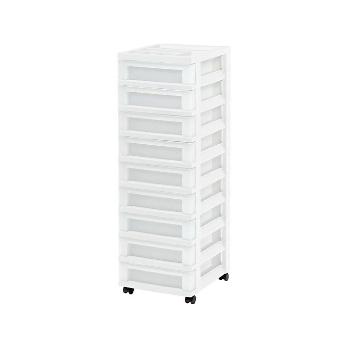 Is your desk overrun with sloppy stacks of paper? Too much clutter in your craft space? The Iris nine-drawer cart can help you get organized in no time. The nine shallow drawers hold everything from craft supplies to reams of paper, so your space stays tidy. Each drawer accommodates letter-size (8.5″ x 11″) paper, and the built-in divided organizer top keeps extra-small items organized and accessible.