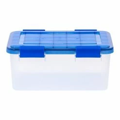 Store your favorite keepsakes and other valuables in this 18.4 qt. Iris Element-Resistant heavy-duty storage bin. The seal on the storage bin lid protects contents by keeping air and moisture out. Safely store up to 25 lbs. of material, such as crafting supplies, photos, and movies in this small storage container. Grooves in the reinforced lid means this 4.6 gal. bin with lid is stackable to save space.
