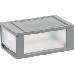 The Iris mini stacking drawer is the answer to your small storage needs. Whether you need a few small drawers for office supplies on your desk or want to build a wall for accessories or tool bits in your closet or garage, this small framed drawer stacks neatly and securely. Create your own organizational system with this mini drawer any way you choose. The sturdy plastic makes this drawer durable, and the smooth glides give you easy access to contents.