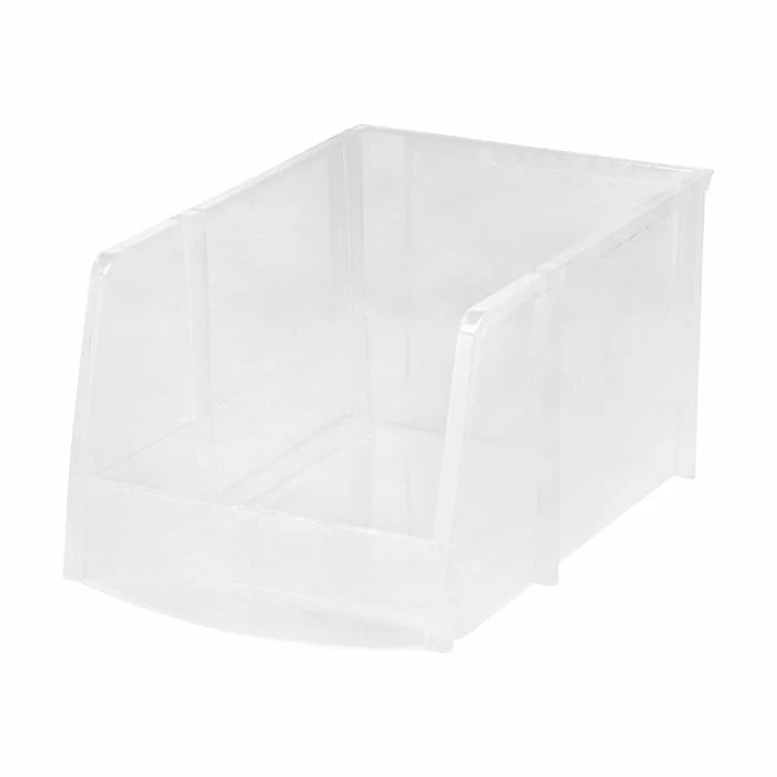 Bring order to a cluttered office with these jumbo bins. The clear construction lets you see the contents stored inside, and the stackable design makes it easy to create a personalized organization system. Each bin features a flat front, providing a convenient space for labels. These IRIS clear bins come in a pack of six, providing an ample supply for your desk, cubicle, or similar work area.