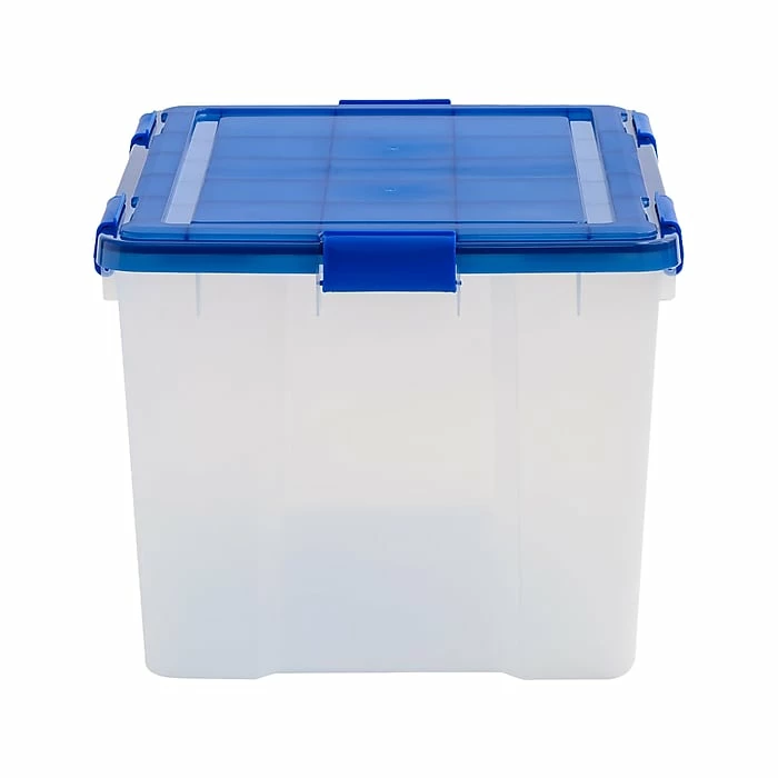 The Iris WeatherPro heavy-duty plastic storage bin features high-quality heavy-duty seal in the lid to preserve and protect valuables and important documents. The heavy-duty storage bin creates a vacuum-like environment, blocking out moisture, dust, and insects.