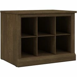The kathy ireland Home by Bush Furniture Woodland 24″W small shoe bench with shelves combines transitional styling and a practical design to offer a perfect entryway organizer. Have a seat on the durable bench, and take a moment to relax as you get ready to head out the door or come home after a long day. The top of the mudroom bench supports 250 lbs., so you can sit down to put on and take off your shoes or set shopping bags down after a trip to the store with confidence. Six cubby spaces keep your home’s entrance organized while providing easy access to footwear. The storage bench’s transitional design blends elements of contemporary and traditional styling to complement a wide range of home furnishings. This small entryway bench with storage has been tested to meet Bush Furniture’s standards for safety, performance, and durability and is backed by a 3-year manufacturer’s warranty.
