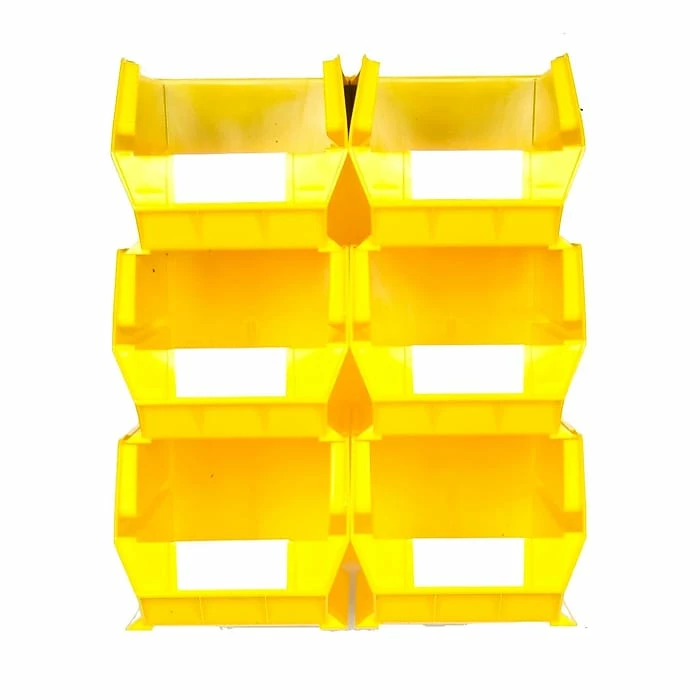 Keep your garage, tool shed, craft room or gardening area tidy with these yellow LocBin storage bins. Made of strong polypropylene, these storage bins coordinate with other LocBin products to fully organize your space. The interlocking design ensures th at the bins remain securely attached to each other, while the wall mount rail system allows you to mount the bins on a garage or shed wall, keeping them out of the way yet close at hand. The set includes wall hangers for easy installation.