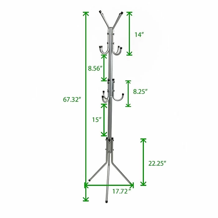 A classic design in silver finish, the Mind Reader ‘Hang’ coat rack is sure to dress up any home. It is perfect to add a touch of style to your entrance way, bedroom, home, office, or waiting rooms. Can hold coats, jackets, hats, scarves, purse, or accessories