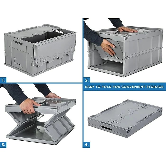 - Storage container combines packing, transport and storage into one reusable collapsible bin