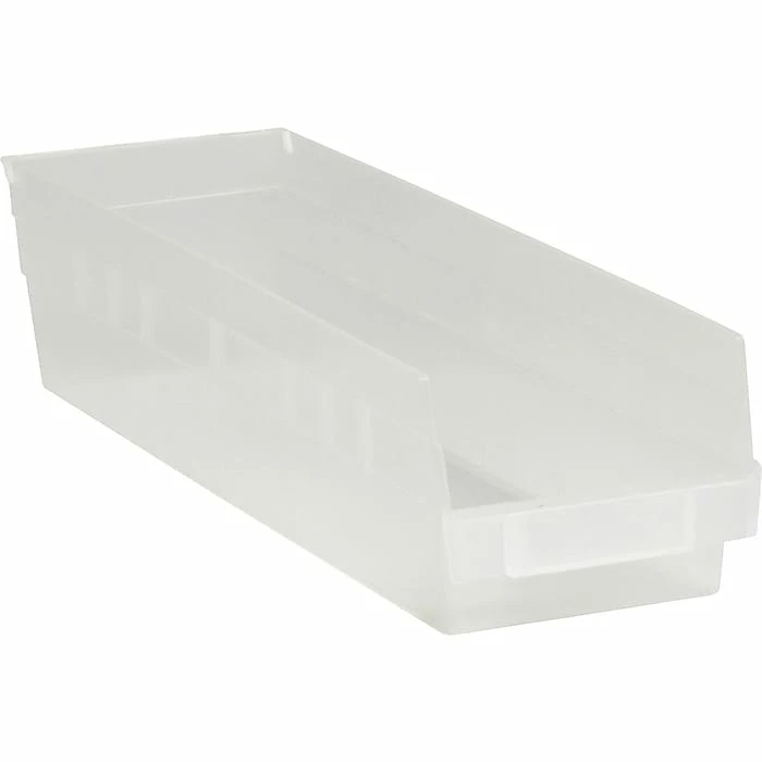 BOx Plastic shelf bin box in clear is manufactured from FDA compliant polypropylene resins for added strength and durability. Bin box measuring 17 7/8″ x 4 1/8″ x 4″ has slotted label holder allows for easy insertion of label or identification card.