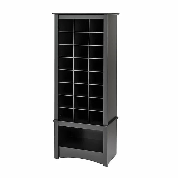 Prepacâ„¢ Tall shoe cubbie cabinet in black keeps the shoes accessible and at eye level and is built with durable laminated composite woods. Cabinet has a durable deep black laminate and has an internal dimensions of 24.75″ x 61.25″ x 15.75″.
