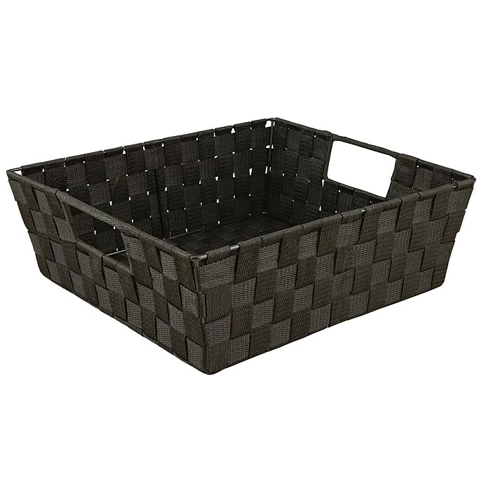 Simplify Shelf Polyester Woven Strap Tote is 13″(L) x 15″(W) x 5″(H) in size and comes in black color. It is made from durable polyester with tear-resistant construction designed to store household items in style.