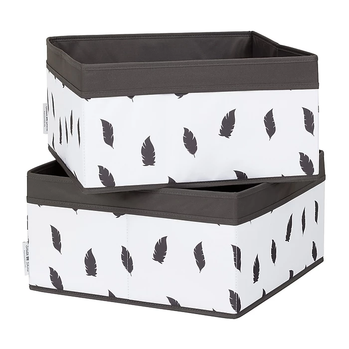 Short on storage space? These baskets, with their feather pattern, are just what you need! Their large size and rigid sides make them perfect for underwear, socks, baby things, toys, face cloths, etc. And the pattern will add a great zany touch to your decor!