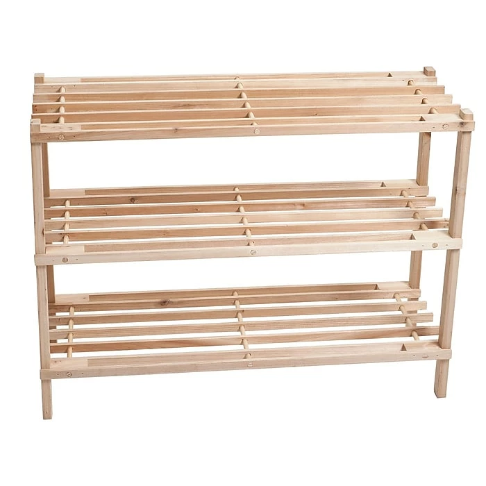 Trademark Lavish Home 3-Tier Blonde wood storage shoe rack in brown color features compact design that is ideal for small homes and apartments. Shoe rack keeps your shoes organized and is easy-to-assemble so you can move it around the house easily.