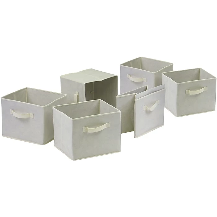 Winsome Capri foldable beige fabric baskets organize the items in systematic manner and are convenient to use.Set can be stored easily as it is foldable and are great for holding files, clothing or art projects and is sold as set of 6.